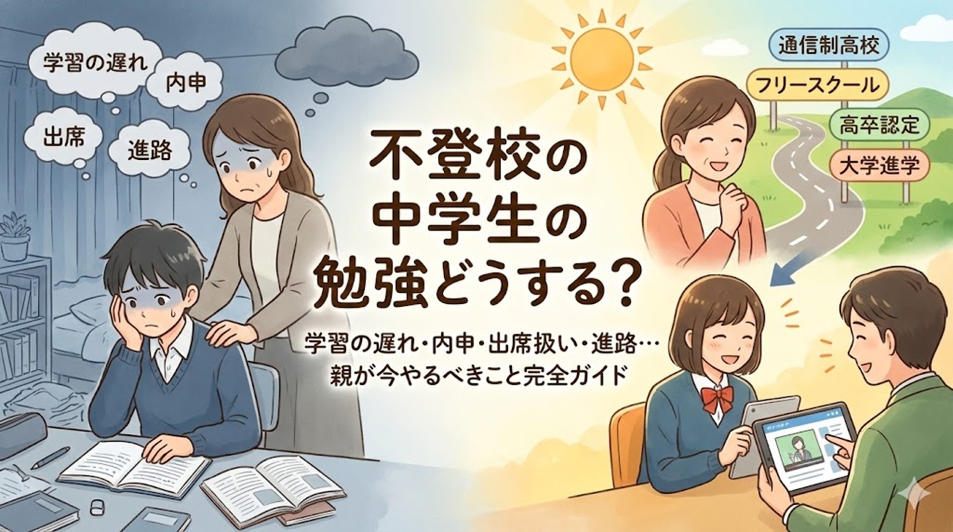 この記事では、不登校の中学生の勉強の遅れ・内申・出席扱い・進路について、親御さんが「今やるべきこと」を優先順位つきで完全にまとめました。